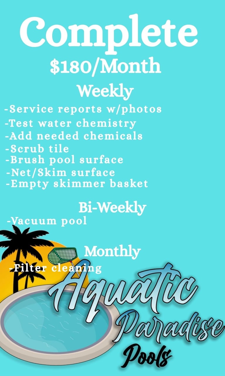 *Are you fed up with unreliable pool technicians, missed appointments, or even inexperienced service? Leaving you questioning what am I actually paying for At Aquatic Paradise Pools, you can relax knowing you're receiving premium pool care along with detailed updates. Therefore, you can enjoy that vacation you had in mind while still receiving weekly detailed reports with photographs, as we understand it’s essential for you to relax, knowing you're in the hands of a qualified professional. No unexpected issues, just high-quality work; let us transform your pool into a paradise.